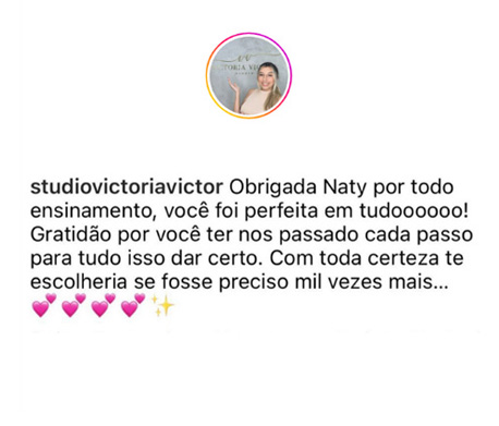Fundadora e CEO do studio Naty Valença, onde já formamos mais de 250 alunas em cursos presenciais na área das sobrancelhas. Hoje são realizados no estúdio em média 450 atendimentos por mês, chegando ao faturamento anual de aproximadamente 300 mil reais.